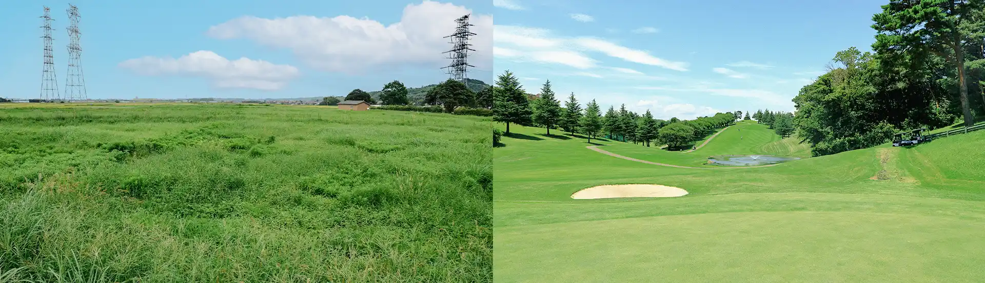 雑草が繁る傾斜地、均一さが求められる芝生、景観を守る中庭。